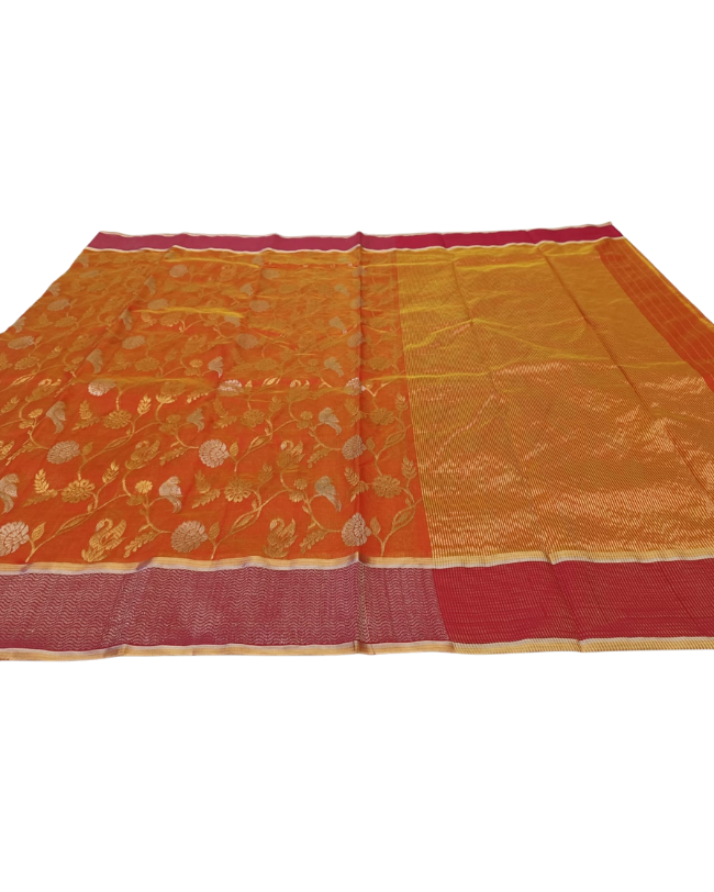 Explore a stunning range of traditional and contemporary sarees — from the luxurious Kanjivaram Silk and elegant Mysore Silk, to the delicate charm of Chanderi, regal Banarasi Masru Silk, and many more.
